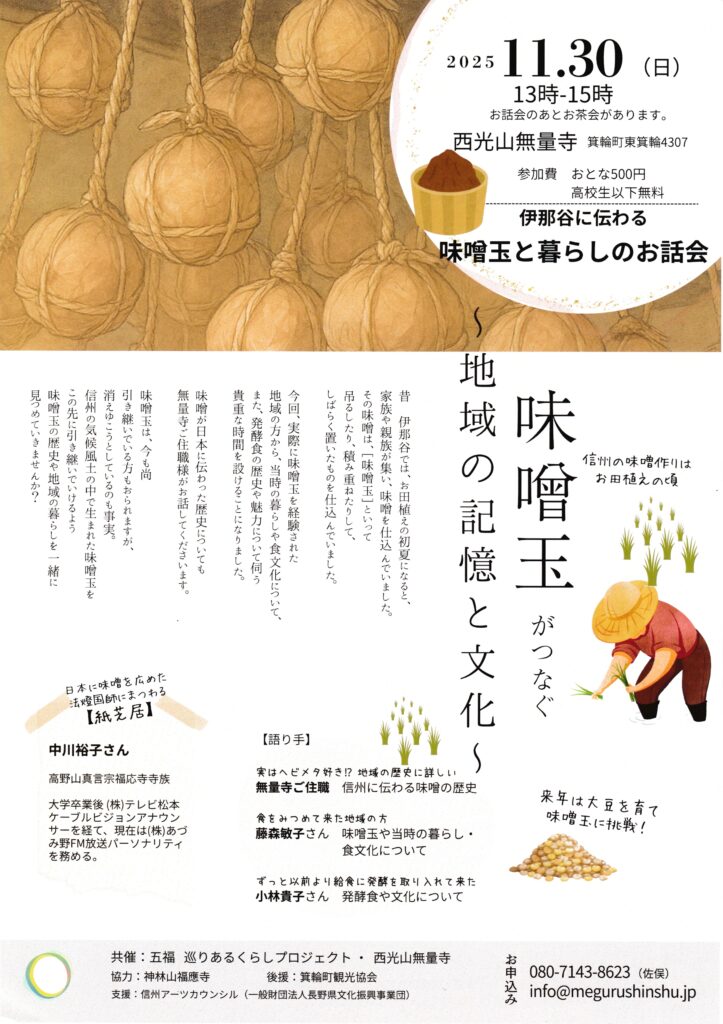 伊那谷に伝わる「味噌玉づくり」や、当時の暮らし・食文化について語り合う会です。